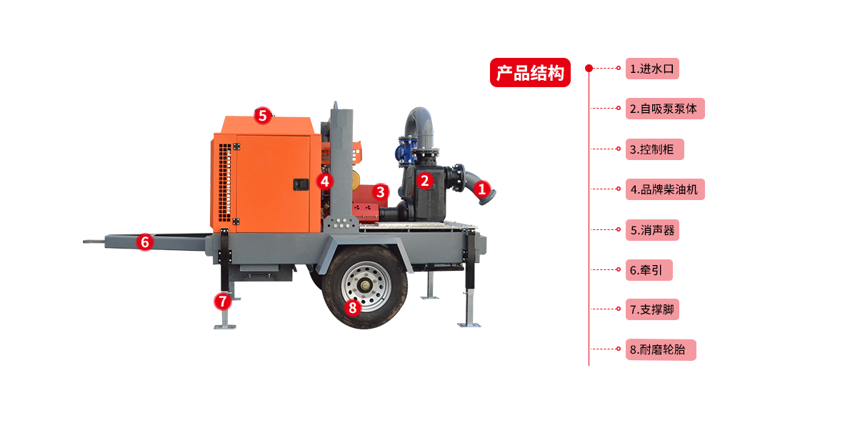 6)該泵還可以與移動搶險車進行配套,以達到臨時排澇抗旱搶險的目的。